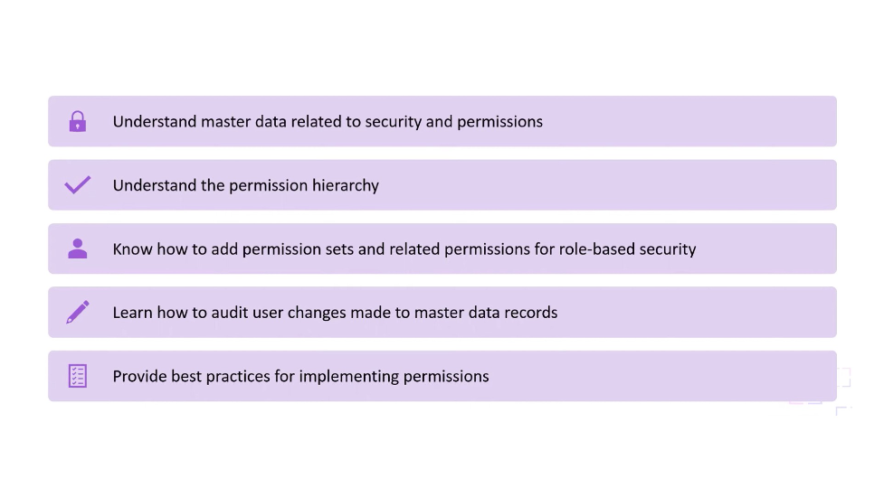 Permission Sets are collections of permissions related to performing tasks or activities, or even a group of tasks, in Dynamics 365 Business Central. They can be very targeted or more general. The more targeted they are the better, as very general permissions can be too broad. Permissions apply to all objects in Dynamics 365 Business Central. If you provide permissions to Table Data, for example, you can limit those permissions to reading, inserting, modifying, deleting, or any combination thereof.